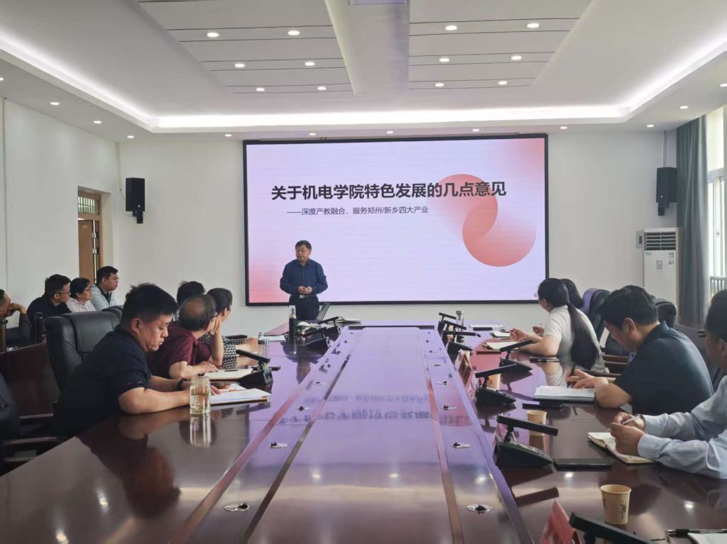 最后,校领导罗士喜总结发言:他首先肯定了机电工程学院的工作,随后就机电学院的特色发展作出指示,明确指出未来机电工程学院要打造“扎根郑州新乡、深耕四大产业(汽车/动力电池/白色家电/电子信息)、强化智能制造技术应用”的特色工科学院,培养懂工艺、能集成、会创新的高技能应用型人才。