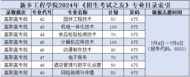 2024年专科批次报考代码