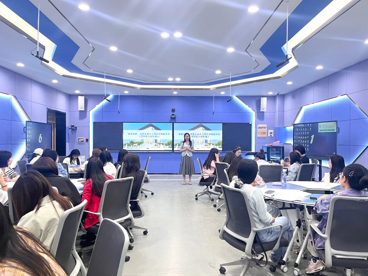 5月23日下午,外国语学院于学院楼B311智慧教室开展“破茧成蝶:师范生成长工作坊的赋能体系与导师能力进阶培训”会议,外国语学院全体无课教师参与。