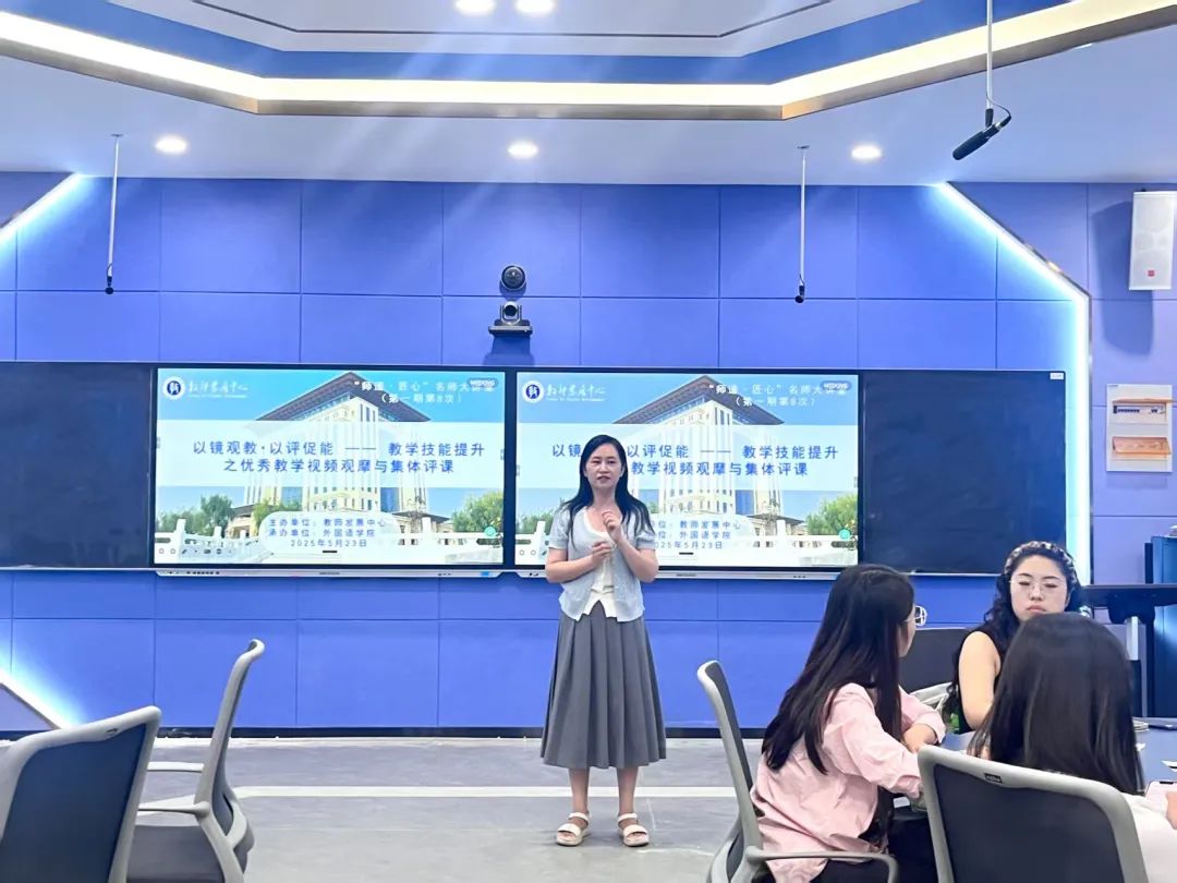 5月23日下午,外国语学院于学院楼B311智慧教室开展“以镜观教·以评促能——教学技能提升之优秀教学视频观摩与集体评课”活动,外国语学院无课教师参与。