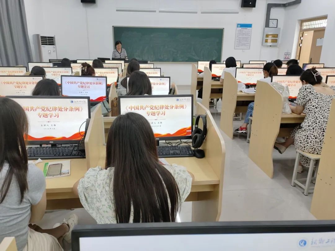 外国语学院党委于5月23日15:50在教学楼2语音室1开展党纪学习教育专题党课。本次党课由外国语学院党委副书记王伟主持,全体教工参加。