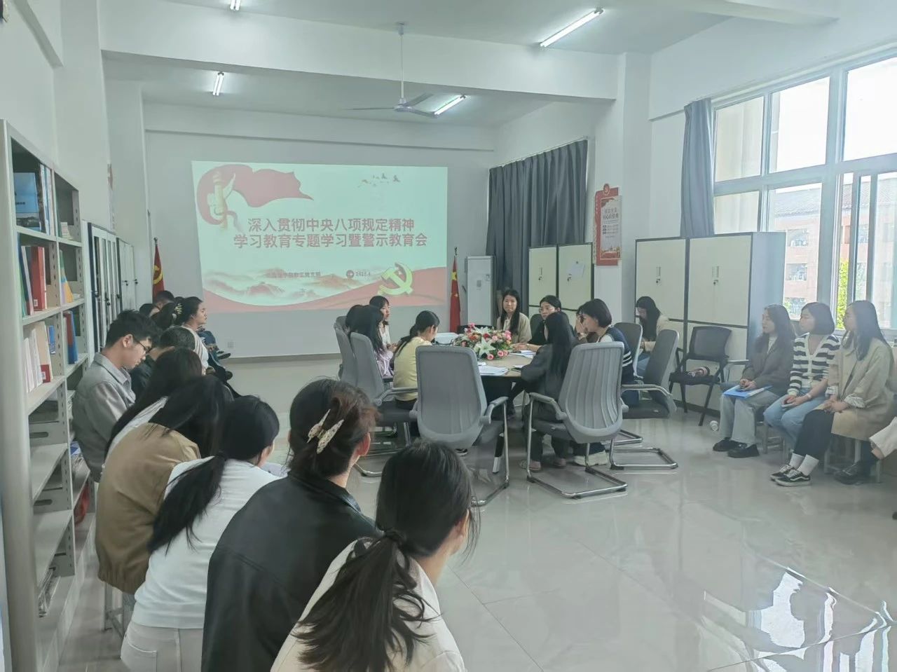 4月24日下午,外国语学院在教学楼2-402党建活动室举办了深入贯彻中央八项规定精神学习教育专题学习暨警示教育会。此次会议由外国语学院教工党支部书记张帆主持,教工党支部全体党员参加。