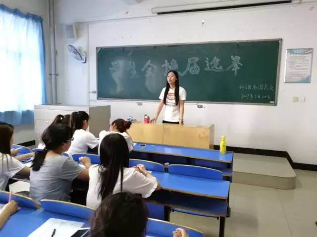 外语系学生会于5月22日中午12:40在12#418教室召开换届选举大会。此次会议由朱国政老师主持,参加竞选的有部分学生会人员,还有大一的个别班长和团支书。担任本次会议评委的有学生会部分干部及大一大二部分班委。