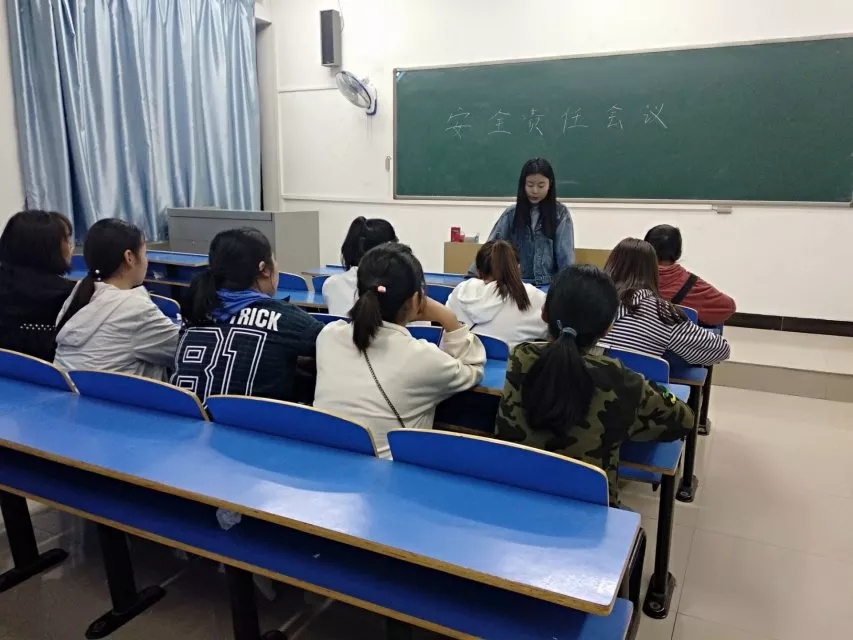 2018年10月8日外语系学生会于12号教学楼组织各个部门召开安全责任会议。
