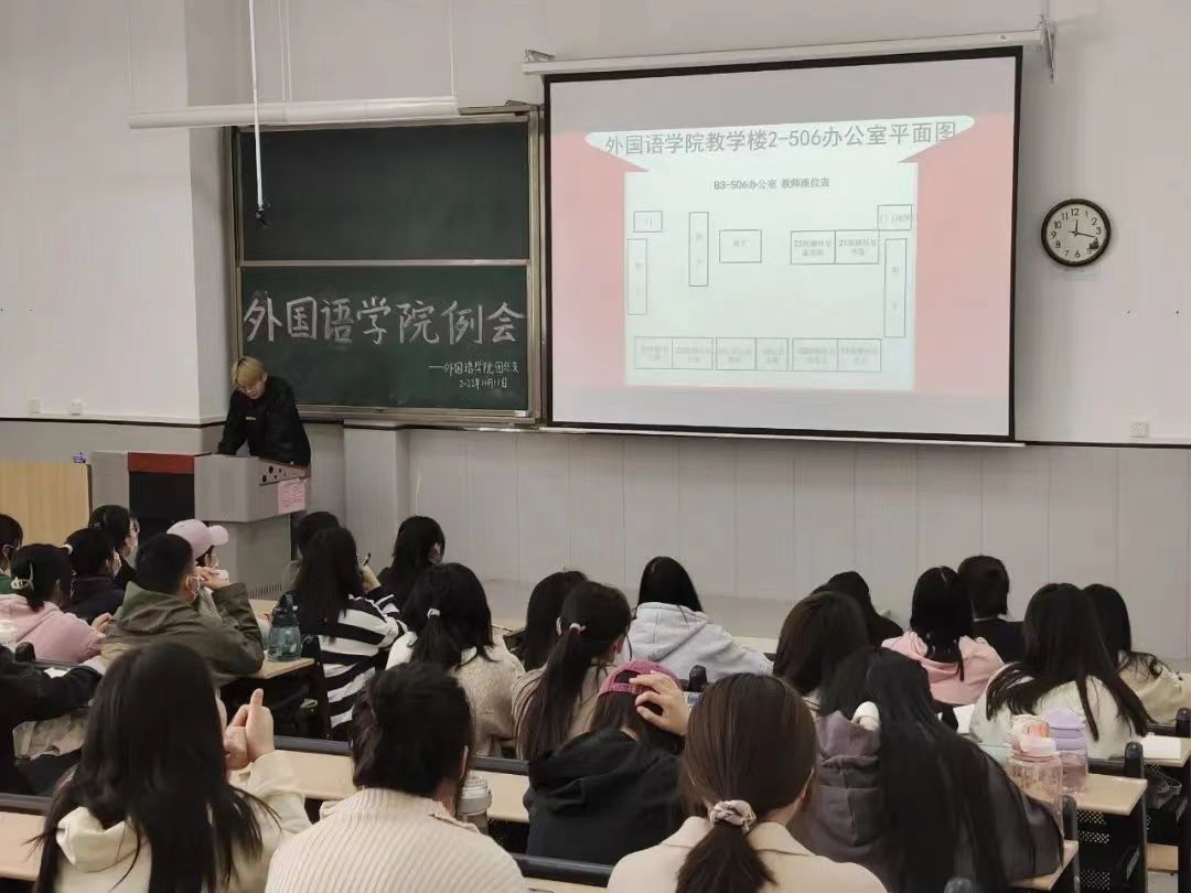 为提高外国语学院学生会干事的办公能力,掌握办公基本技能,提高工作效率,外国语学院团总支学生会于10月11日中午12: 20在教学楼1-110教室开展办公室干部培训。本次培训由学生会办公室副主任姚彪主持,全体学生会成员与会。