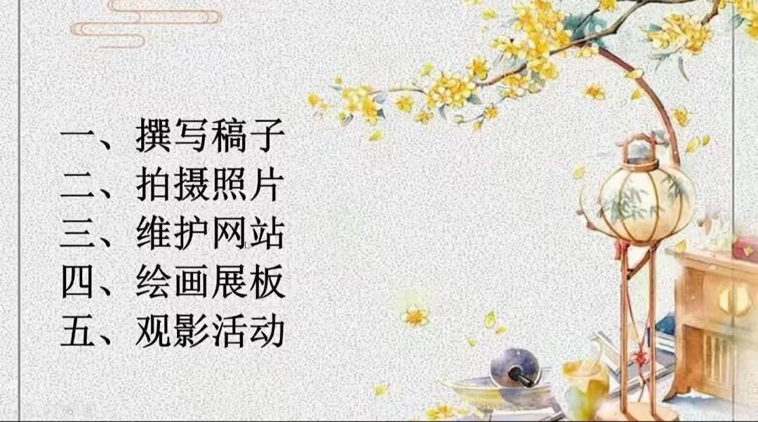 会上,杨田吉围绕撰写新闻稿、拍摄照片、维护网站、绘画展板和观影活动五项主要工作进行展开,细化并明确了宣传部各项工作的细责与要求,如撰写新闻稿中需要注意的问题、拍摄照片的方法技巧、宣传网站的意义和重要性、绘画的布局排版和观影的组织效果。同时也强调要端正工作的态度,发挥灵活性思维,提高工作效率,加强宣传部的工作能力。至此,本次培训圆满结束。