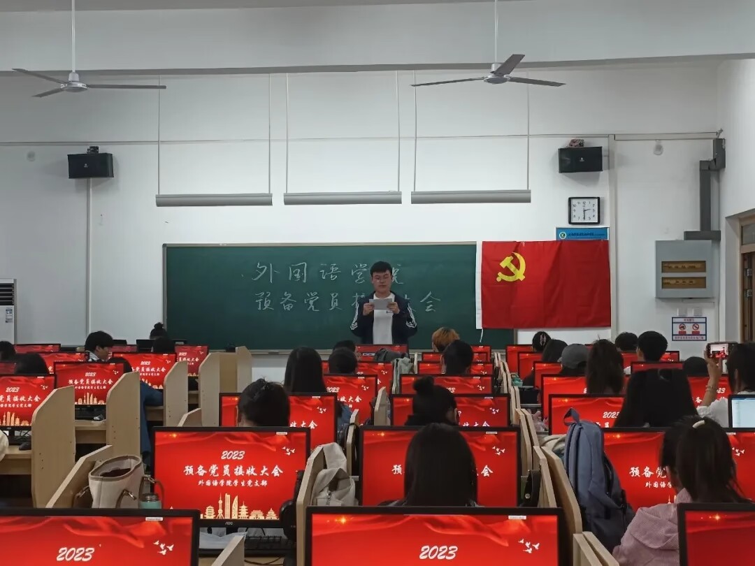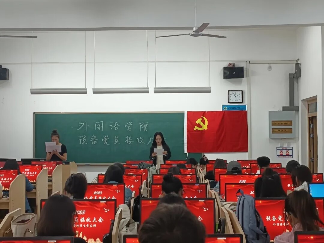 为推动基层党建工作开展,落实党支部发展党员工作计划,进一步加强学生党支部建设,外国语学院学生第一党支部、第二党支部分别于5月30日下午在语音室2、语音室3召开预备党员接收大会。本次大会分别由第一党支部书记李荔同志和第二党支部书记刘亚飞同志主持,全体正式党员、预备党员和发展对象与会。