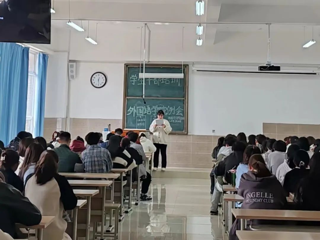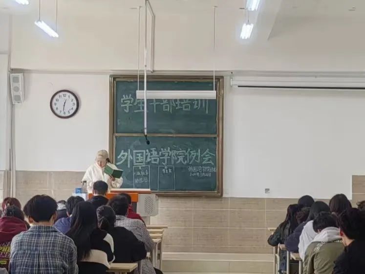 为强化学生干部的工作能力,明确工作要求,外国语学院学生会于3月26日中午12:30在树人楼103教室召开本学期第五周例会,本次例会由学生会副主席赵麒主持,23级各班班长、团支书、学生会及助理团全体成员参会。