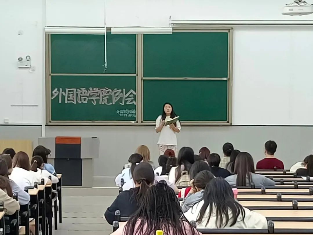 为提升校园管理水平,强化学生纪律观念,营造更加整洁、安全、和谐的校园环境,外国语学院学生会于5月28日中午12:00在教学楼1-110教室与树人楼314教室召开本学期第十四周例会。本次例会由学生会副主席赵麒主持,大一至大三各班班长、团支书、学生会及助理团全体成员参会。