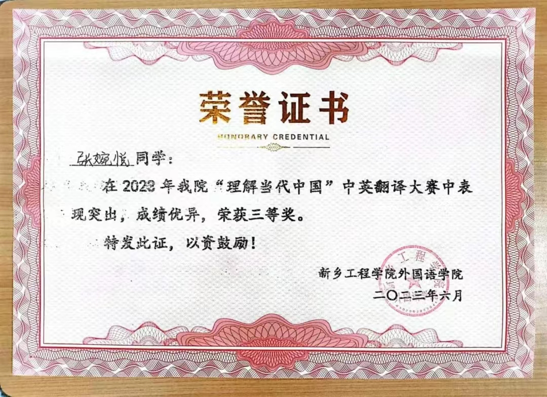 张婉悦,中共预备党员,英语205班学生,自入学以来多次荣获国家励志奖学金、校内一、二等奖学金,曾荣获校级“文明学生”、“三好学生”、“暑期社会实践先进个人”等荣誉称号。