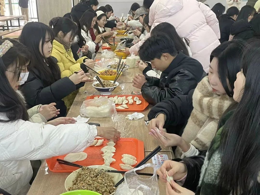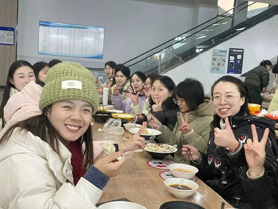 活动开始后,工作人员将提前准备好的饺子馅、饺子皮摆放在桌子上,老师和同学们纷纷参与到包饺子的热闹氛围中,餐厅俨然变成了“手艺比拼擂台”,只见她们一手拿起饺子皮,一手填馅,轻轻一捏一攥,用各自的手法捏出了各式各样的饺子,不一会儿的功夫,一排排整齐划一的饺子很快就摆满了一个个盘子。在包饺子的过程中,大家相互交流,畅谈着日常生活的点滴,分享彼此的快乐,现场气氛融洽和谐,欢声笑语凝结成了冬日里最温暖的祝福,随后,空气中弥漫着阵阵香味,热气腾腾的饺子被端上桌子,老师和同学们满足的品尝着自己的劳动成果。至此,本次活动圆满结束。