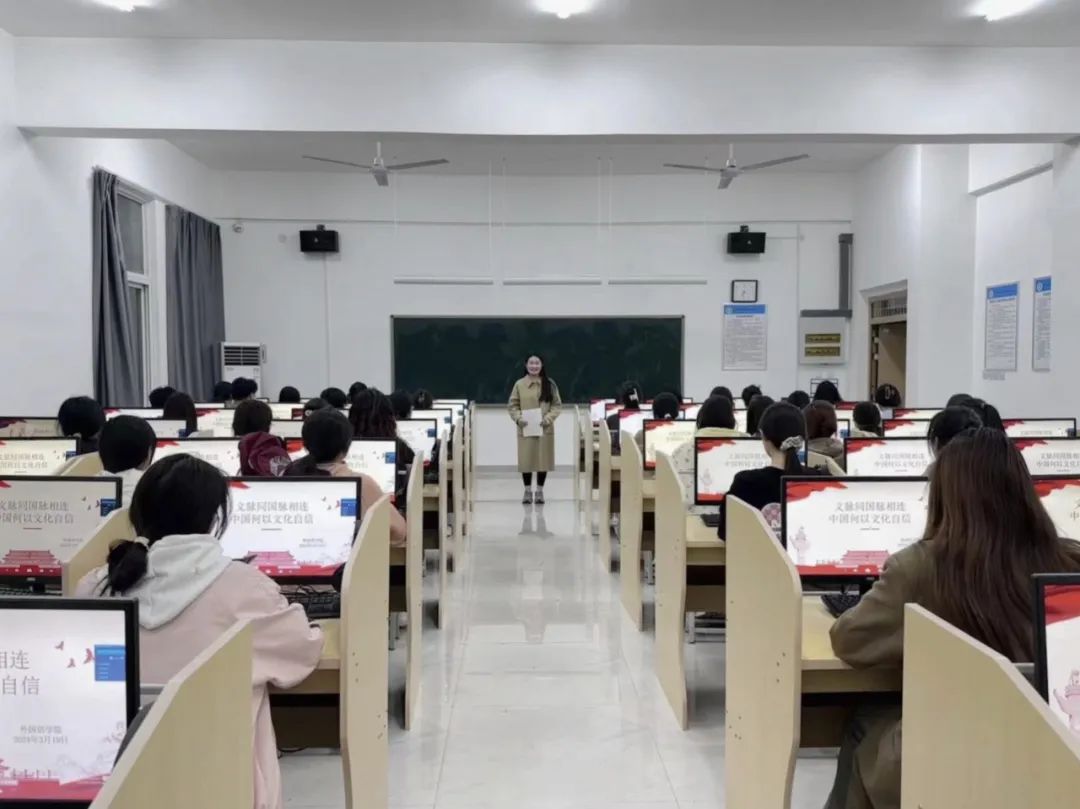 为深化同学们对文化自信的认识与理解,3月19日晚上7:30-8:00,外国语学院于教学楼二语音室2举办以“文化同国脉相连,中国何以文化自信”为主题的春季开学思政第一课,本次讲座由外国语学院辅导员周欣嵘主讲,外国语学院学生党员、学生干部、宿舍长参加。