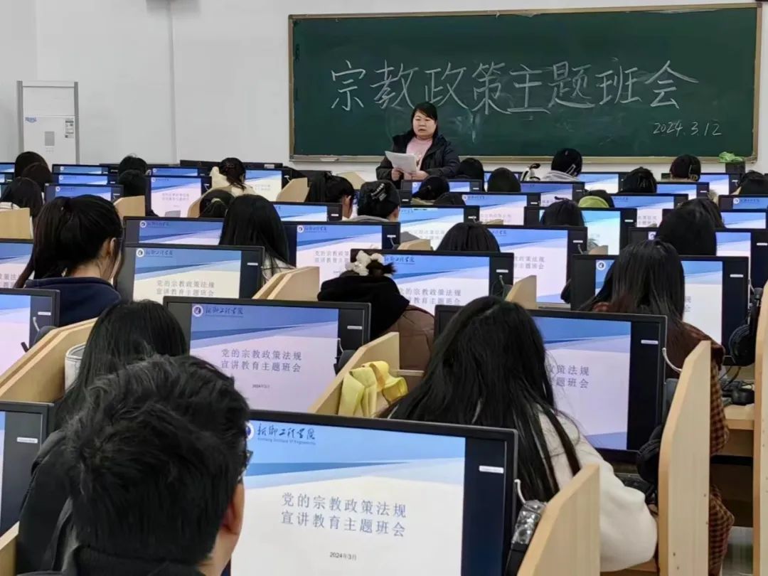 主题班会上,各年级辅导员带领学生学习了党的宗教工作的基本方针、教育与宗教相分离原则的内涵和《宗教事务条例》有关规定,并对学生日常行为规范提出具体要求,引导学生树立马克思主义宗教观,进一步增强抵御宗教渗透、防范校园传教的自觉性和主动性。