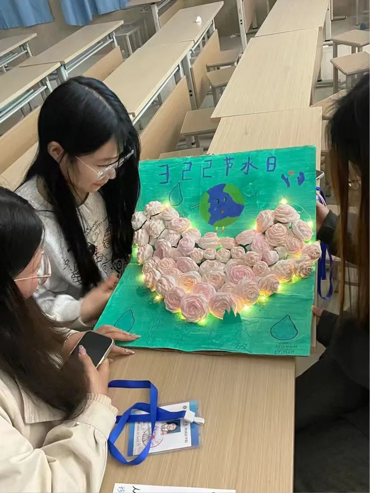 水是生命之源,是人类生活不可或缺的重要资源。然而,由于人口的不断增长和工业发展的需求,水资源日益紧缺,亟待我们每个人的关注和行动。本次世界水日活动在此号召下展开,分为手工设计、宣传画以及微视频宣传三个方面。同学们十分积极地参与了此次活动,将自己的才思以手工、绘画、微视频的的形式展现出来,充分达到了宣传“节水”、“爱水”的作用。在手工设计、绘画方面,同学们充分利用身边的小物品,如卫生纸、废纸板等,在小物品上构建了一个节水的观念,并且也充分体现了他们的动手能力。而在微视频宣传方面,大家从我们日常生活的用水方面拍起,在vlog的展示中我们日常看似微小的举动,却能在不经意间起到足够大的节水效果。