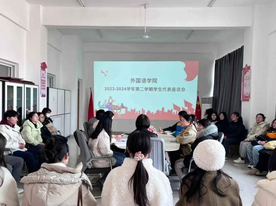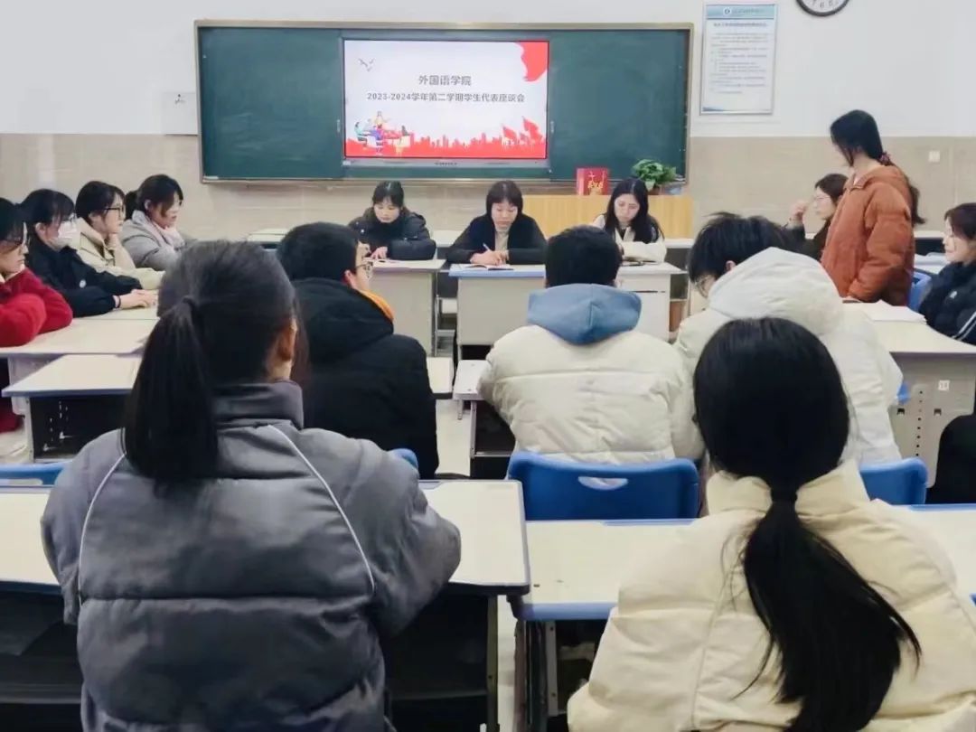 为加强师生交流,充分了解学生的思想动态,提升育人实效,2月29日中午,我院于教学楼2-402党建活动室召开2023—2024学年第二学期师生座谈会,此次师生座谈会由外国语学院党委副书记王伟主持,外国语学院各年级辅导员和各年级学生代表与会。