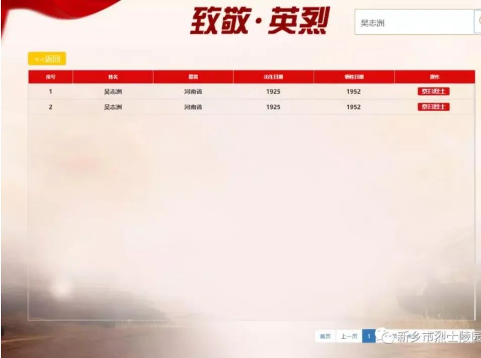 第二步:在搜索方框内输入烈士姓名,点击搜索。