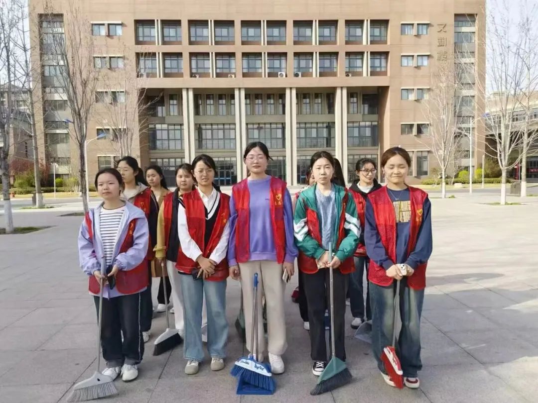 春风万丈惊蛰来,青春当属志愿红。通过此次文明志愿打扫活动,不仅为全体师生提供了安全舒适的校园环境,而且提高了同学们的环保意识,在志愿服务中,“奉献、友爱、互助、进步”的社会新风为学校增添了一片春色。