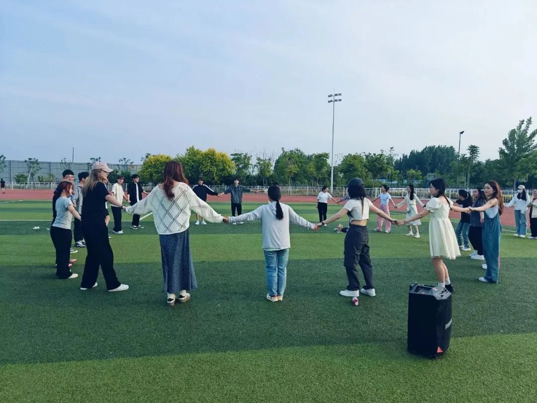 为加强部门之间的联系与合作,增进各部门之间的友谊与团结,外国语学院学生会于4月27日在南校区操场举办“奔跑青春向未来,趣味运动展姿态”主题活动,外国语学院学生会全体成员参与。