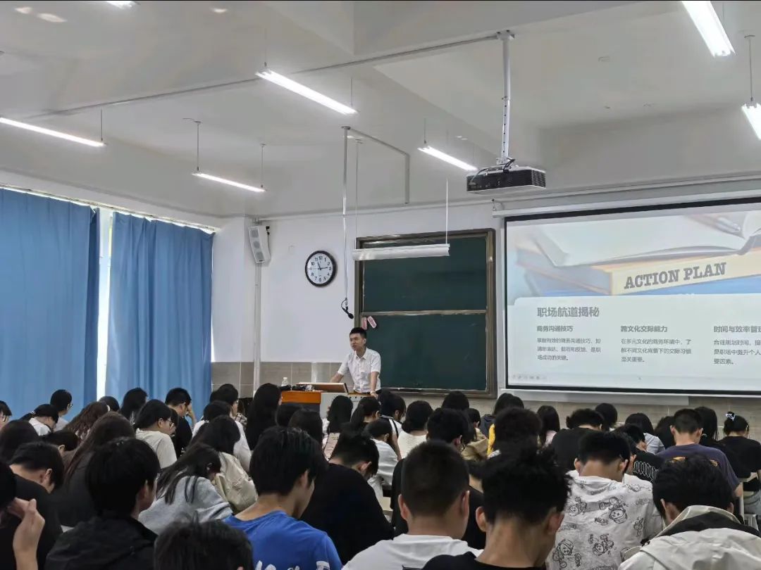 现场座无虚席,在商务英语专业方面,聂威详细介绍了商务英语的专业特点、就业前景以及在全球化经济中的重要作用,他指出,商务英语专业不仅要求学生具备扎实的英语语言基础,还需要掌握商务知识和跨文化交际能力,通过生动的案例,聂威向同学们展示了商务英语在国际贸易、商务谈判、市场营销等领域的实际应用,让同学们对商务英语有了更直观的认识。