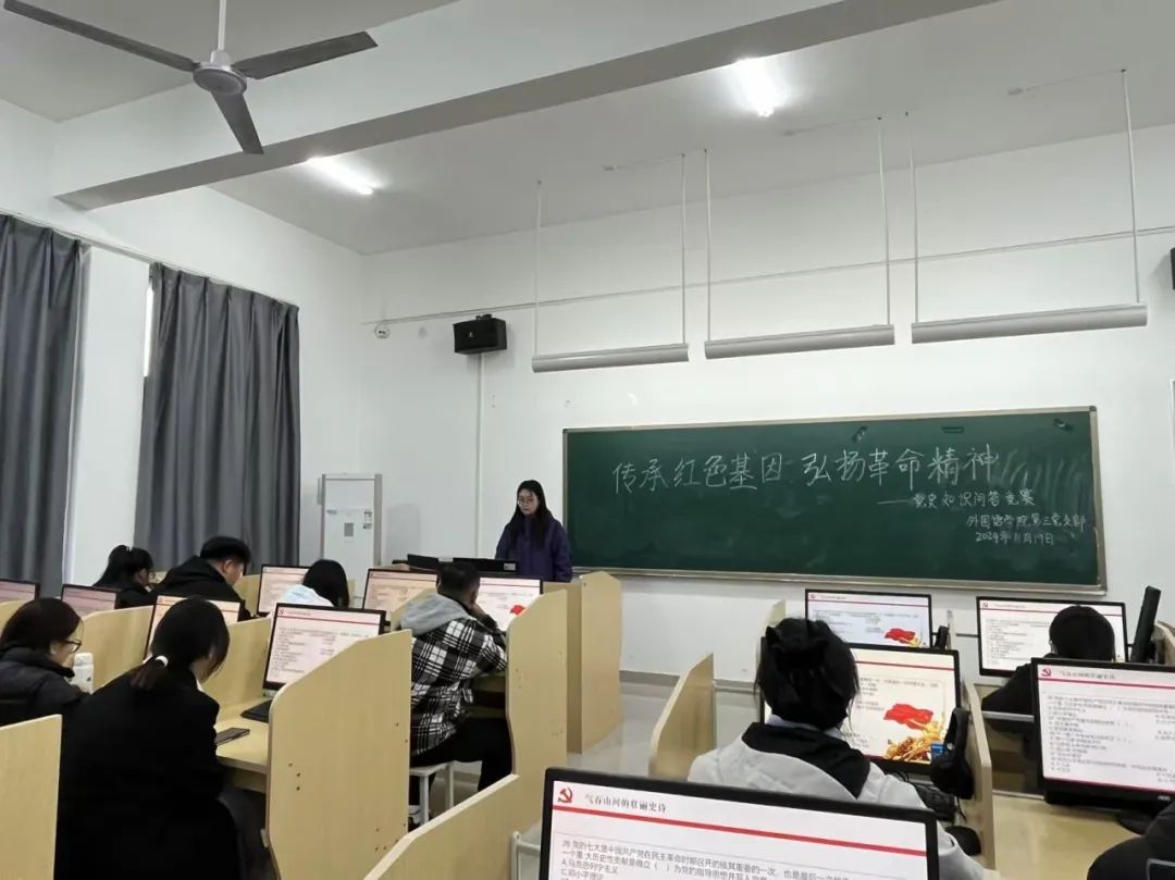 红色文化是在革命战争年代,由中国共产党人、先进分子和人民群众共同创造并极具中国特色的先进文化,蕴含着丰富的革命精神和厚重的历史文化内涵,是中华民族宝贵的历史遗产和精神财富。在新的历史时期,传承革命精神,弘扬红色精神,增强文化自信,是吾辈有志青年的使命担当。11月19日,外国语学院第三党支部开展了以“传承红色基因,弘扬革命精神”为主题的党史知识问答竞赛活动。