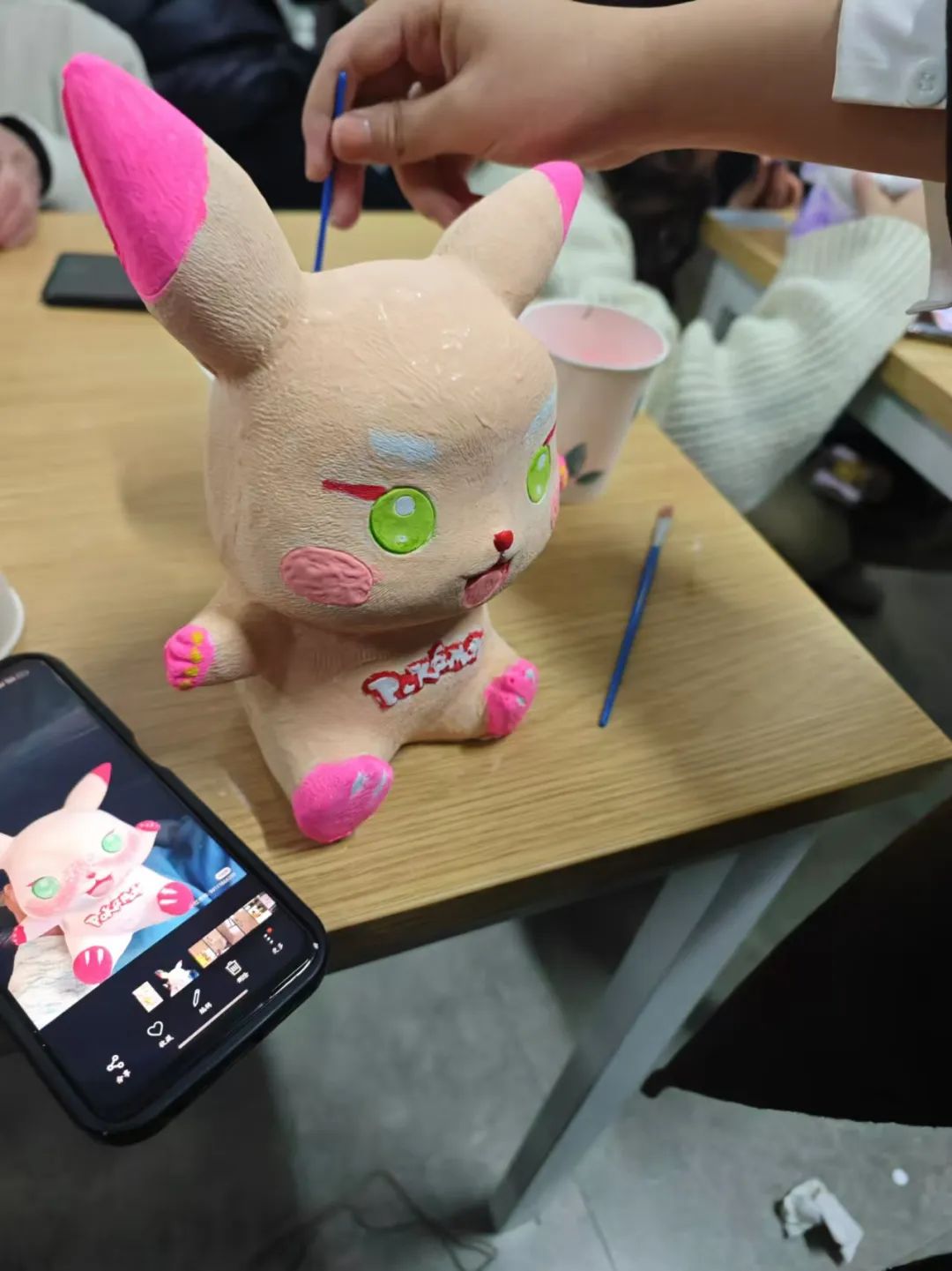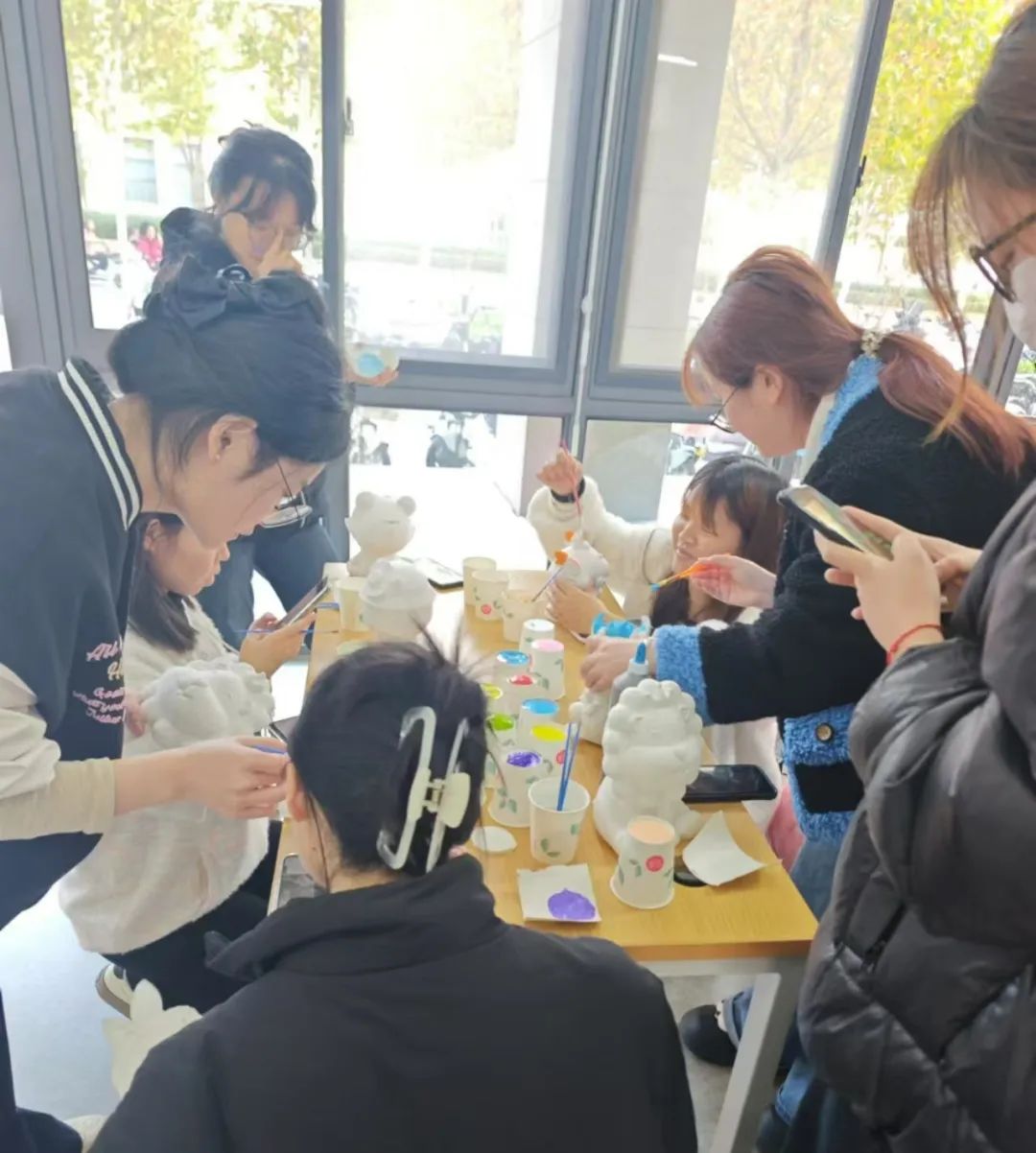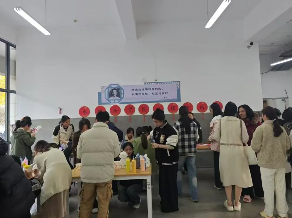 此次活动通过石膏娃娃彩绘、DIY 剪纸、漆扇创作等丰富多样的形式,为同学们带来了一场别具意义的心灵探索之旅。在石膏娃娃彩绘区域,同学们发挥着自己的想象力与创造力,为洁白的石膏娃娃披上了绚丽多彩的外衣。同学们专注于色彩的搭配与细节的描绘,沉浸在这一充满童趣的活动中。在DIY 剪纸活动现场,同学们手中的剪刀如灵动的画笔,在彩纸间穿梭。一方方寻常彩纸,经他们的巧手点化,便脱胎换骨,化作了精美绝伦的剪纸作品。无论是寓意吉祥的传统图案,还是充满创意的现代设计,都展现出同学们内心丰富的世界。漆扇制作区域同样热闹非凡,每一把漆扇都承载着同学们的创意与情感,成为了独一无二的艺术品。在扇动微风的同时,也扇走了心中的阴霾,展现出积极向上的精神风貌。