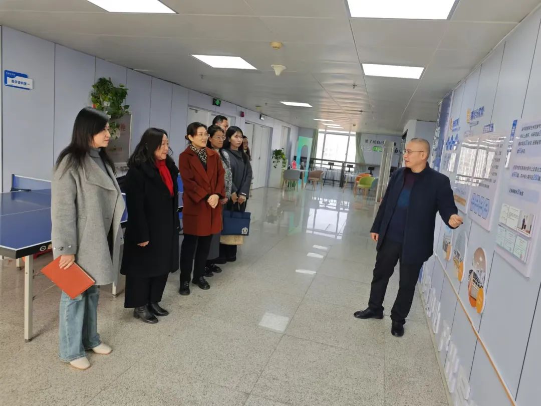 调研组抵达河南工学院后受到了学校的热情接待。 调研组首先参观了河南工学院外国语学院的学生创业公司、走廊文化建设、教研室、现代产业学院等特色区域,其配备的先进教学设备、完善的实验教学软件以及科学合理的教研室管理制度,给调研组留下了深刻印象。随后,考察组重点了解了该校外国语学院在商英专业建设方面的产学研相结合的创新做法,调研组成员纷纷表示收获满满。