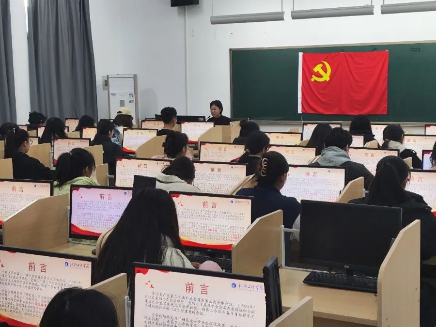 为深入学习贯彻党的二十届三中全会精神,进一步提升学生党员的政治素质和理论水平,11月28日,外国语学院于第二教学楼语音室3组织开展“贯彻党的二十届三中全会精神”主题党课,本次党课由外国语学院党委副书记王伟主讲,外国语学院各学生支部新发展党员参加。
