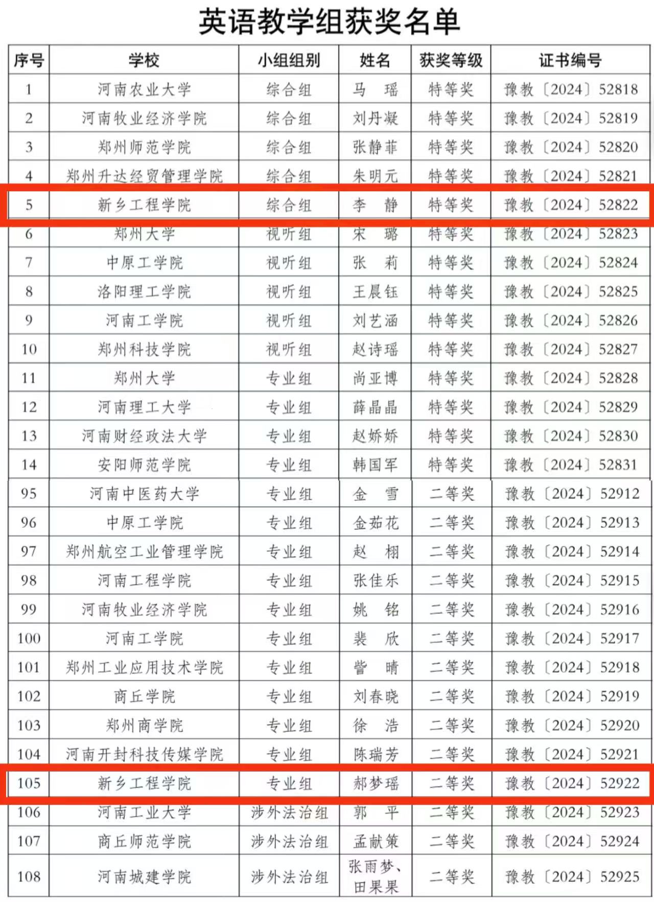 本次大赛以落实全国和全省教育大会精神、立德树人根本任务为宗旨,着力于加强高素质教师队伍建设并激发高校课堂教学创新活力,众多高校团队踊跃参与。永利23411集团官网外国语学院师生在大赛中表现卓越,凭借扎实功底、严谨态度、创新理念与默契协作脱颖而出。英语教学组中,李静与郝梦瑶老师以提升学生实际应用能力为导向,积极探索创新教学法,成果显著获评委盛赞;思政微课组里,宋爽教师团队深挖红色文化精髓,将立德树人理念融入教学,引导学生坚定理想信念,彰显高超教学水准与深厚教育情怀;跨文化组中,学生团队秉持严谨态度,独特诠释中外文化差异,以出色个人及团队能力在比赛中斩获佳绩。