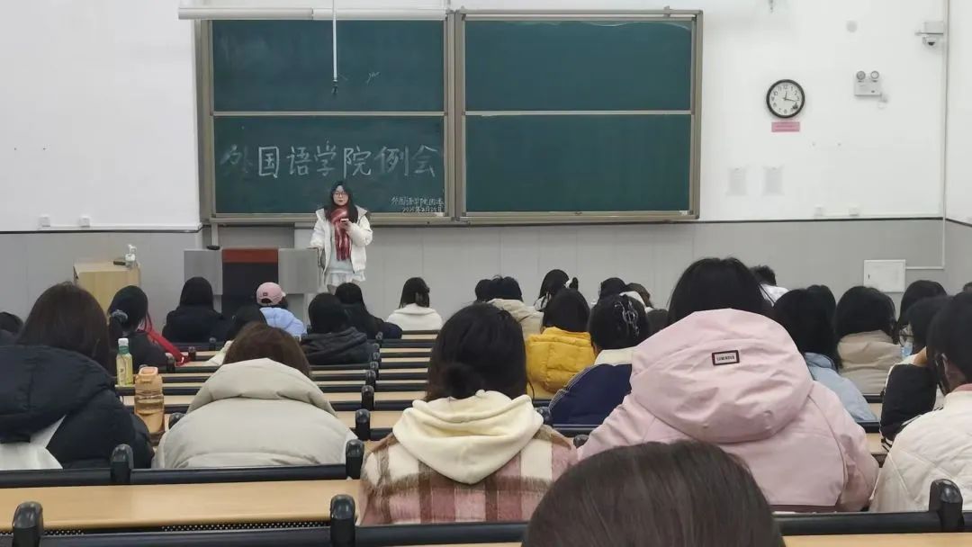 为引导团委学生会各部门顺利开展新学期工作,加强学生干部队伍建设,强化学生自我管理能力,外国语学院团委学生会于2月25日中午12:00在教学楼1-110教室和树人楼225教室召开本学期第一次例会。本次例会由我院学生会主席雍思婷主持,团委书记温雪燕出席,大一至大三各班班长、团支书、学生会及助理团全体成员参加。