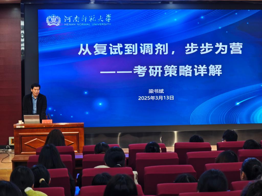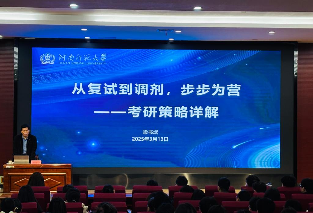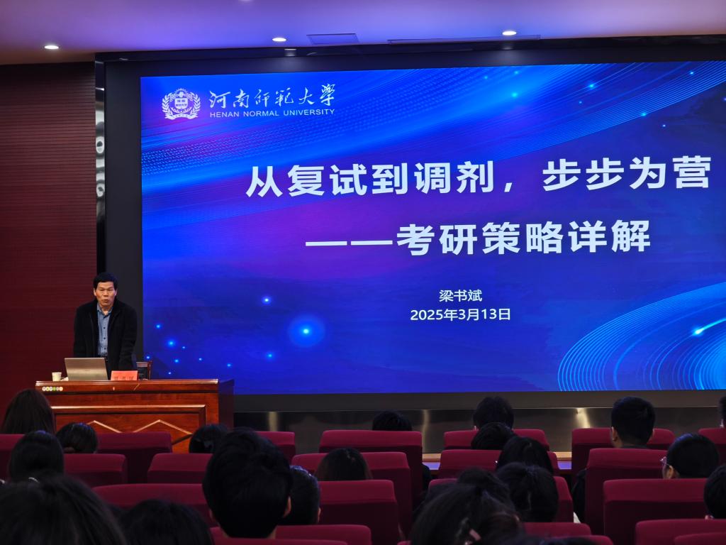 为助力2025届考研学子高效备战复试,精准掌握调剂策略,全面提升临场应变能力与备考信心,3月13日上午9:00,我院有幸邀请到河南师范大学信息化建设与管理办公室副主任梁书斌在学院楼报告厅作题为“从复试到调剂,步步为营”考研策略详解讲座。