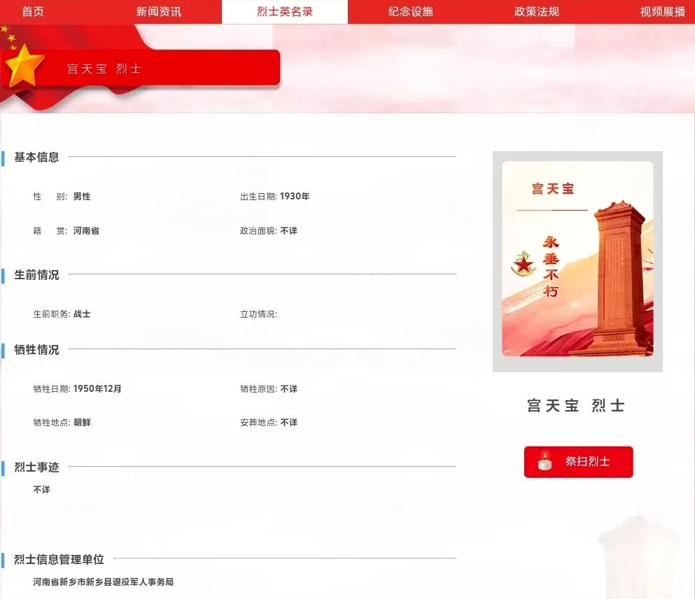 5、点击你要祭奠的烈士姓名,出现烈士基本信息,点击右下角“祭扫烈士”。