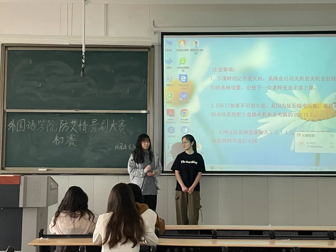 为深化青年学子对艾滋病防治的认知,引导其树立科学防艾理念,4月16日晚,外国语学院"知艾防艾无惧色,科学防治护健康"主题情景剧初赛在教1-311教室举行。学院青年志愿者联合会主席关佳妮担任活动主持,八支参赛队伍通过艺术创作展现防艾教育新风貌。