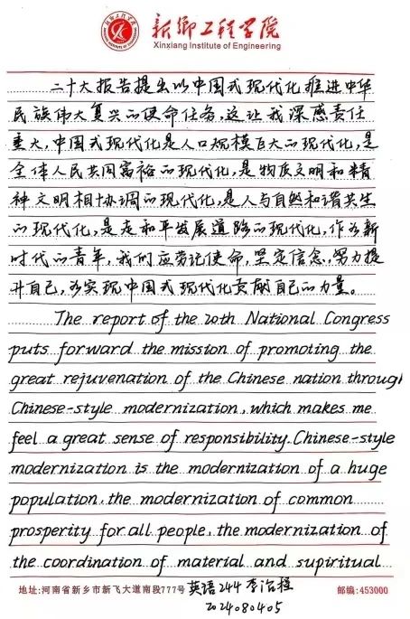 外国语学院“三笔字”书法比赛优秀作品展示(二)