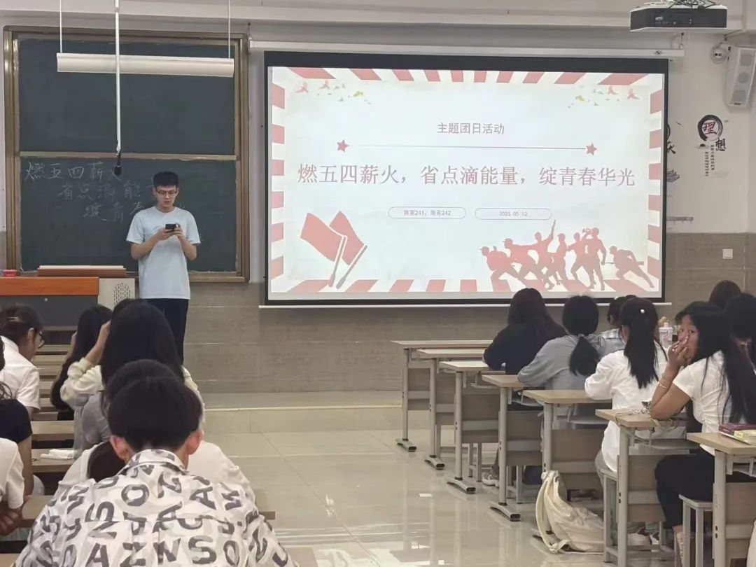 在本次活动中,各班团支书以阐释五四精神为核心,结合当代青年责任,特别强调了践行绿色低碳生活对实现可持续发展的重要作用。通过案例分析、数据展示等形式,同学们深入了解了能源与环境问题的严峻性。互动环节中,大家踊跃分享日常生活中的节能妙招,并一致认为:传承五四精神不仅要体现在爱国奋进中,更应落实到具体行动上——从节约一度电、一滴水做起,以青春之力助力生态文明建设。