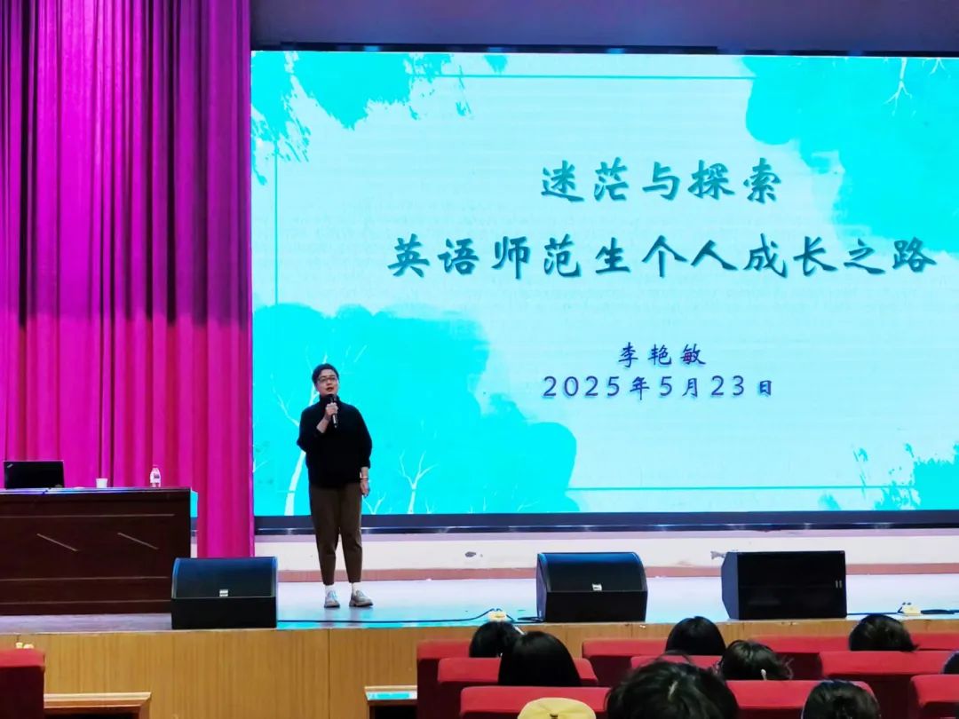 5月23日上午,外国语学院于B3报告厅成功举办“迷茫与探索——英语师范生个人成长之路”专题讲座。本次讲座由英语专业教研室主任牛莉莉主持,新乡市第十中学英语高级教师、河南省骨干教师李艳敏担任主讲人,外国语学院22、23级英语师范生参与此次活动。