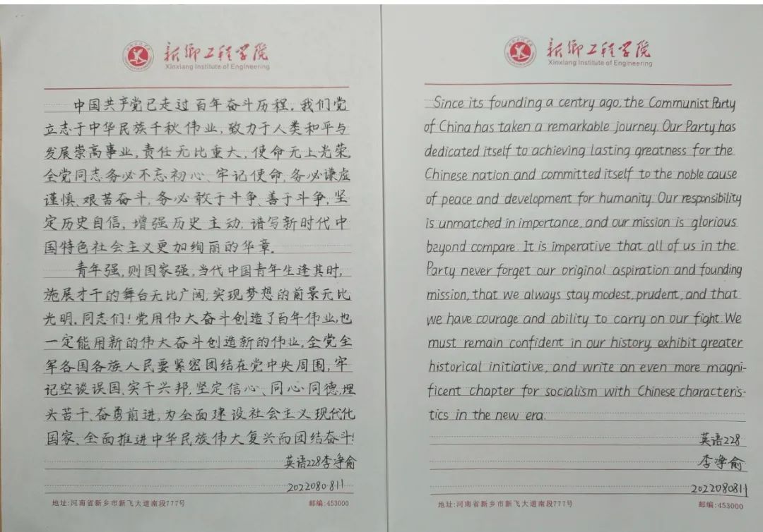 外国语学院“三笔字”书法比赛优秀作品展示(五)