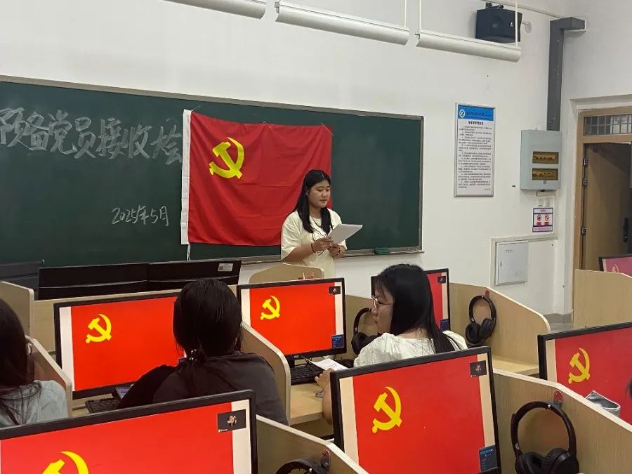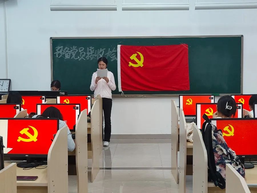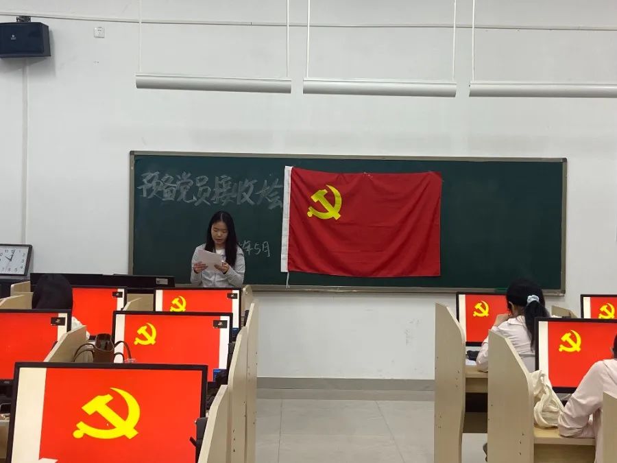 为切实增强外国语学院党支部的力量,加强党员队伍建设,外国语学院第一党支部于2025年5月28日在教学楼2语音室7组织召开了预备党员接收大会,会议由第一党支部书记殷可主持,支部全体党员及王玉丹等16名发展对象参会。