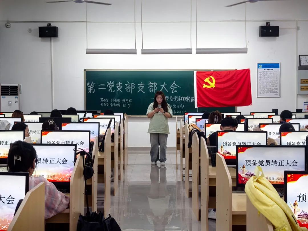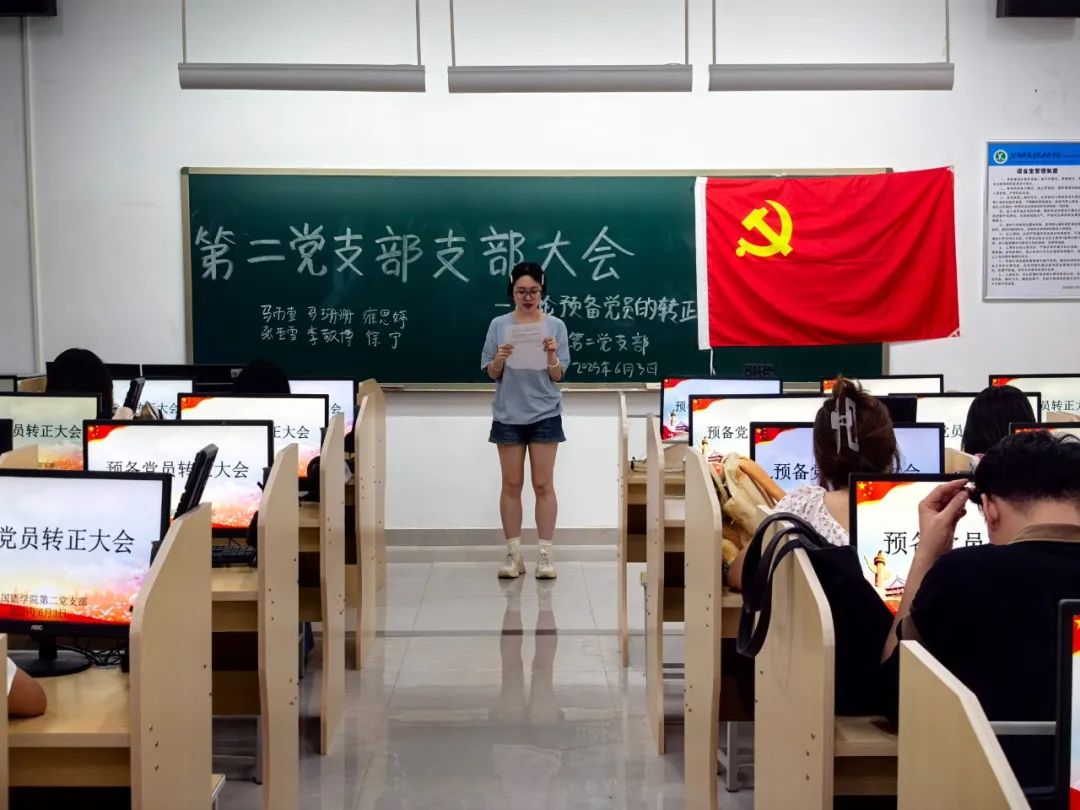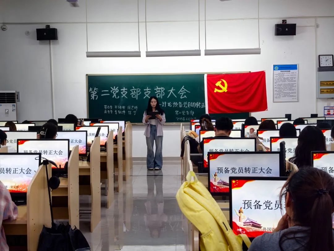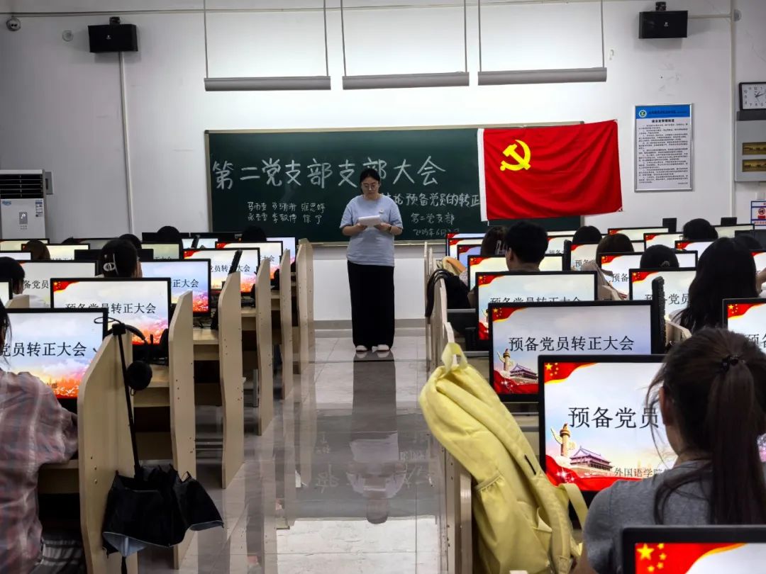 为壮大党员队伍力量,强化党组织战斗堡垒作用,外国语学院第二党支部于2025年6月3日在教学楼2语音室2召开预备党员转正大会。会议由支部书记范嘉欣同志主持,支部全体党员参会。
