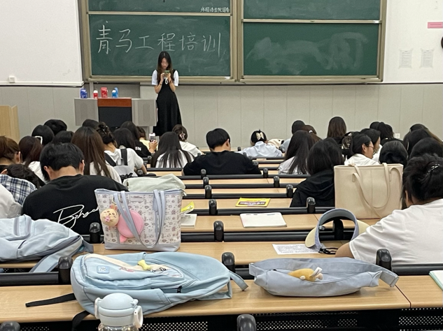 为深入学习习近平总书记关于共青团工作论述的核心内容,加强对青年学生的政治引领,外国语学院于6月3日中午12:00在教学楼1-110教室开展“高举团旗跟党走”专题青马工程培训。本次培训由院团委组织部部长张思艺主讲,大一至大三各班班长、团支书、学生会及助理团全体成员参会。