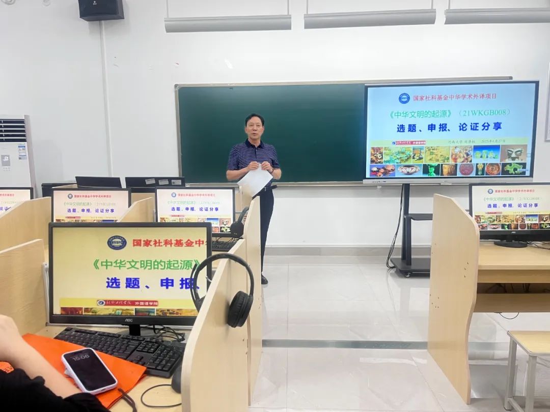 为提升外国语学院教师科研能力,助力国家社科基金中华学术外译项目申报。6月27日,外国语学院在语音室3成功举办国家社科基金中华学术外译项目选题申报论证分享会。