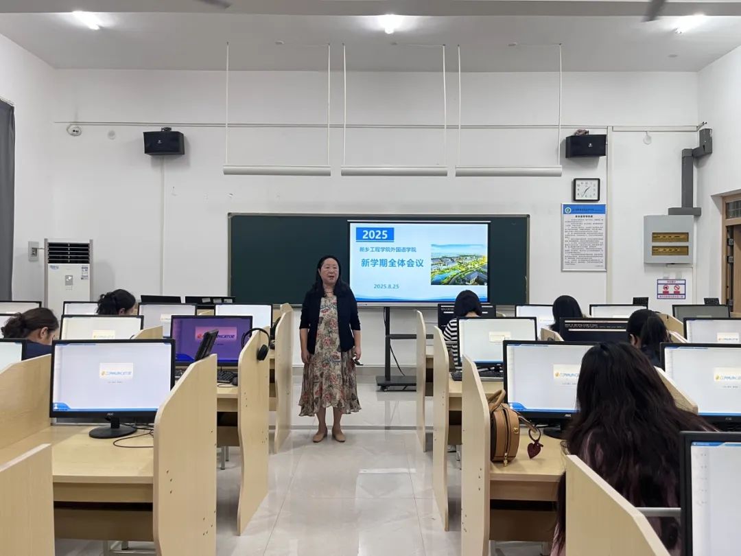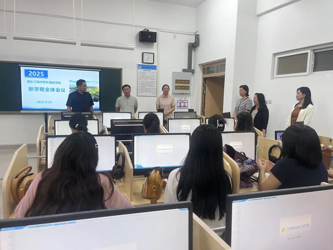 8月25日,外国语学院在语音室3召开2025-2026学年第一学期全体教师会议。会议由外国语学院副院长张帆主持,外国语学院全体教师参会。校领导张永福副书记、赵瑞玲副校长、韩国立副校长一行莅临指导。