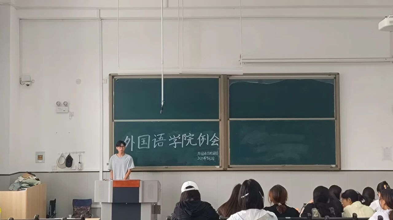 为明确新学期学生工作方向,凝聚学生骨干力量,提升服务效能,外国语学院团委学生会于9月2日中午12:00在教学楼1-107教室召开本学期首次例会。本次例会由我院学生会主席任奥开主持,23级、24级本科各班班长、团支书,以及学生会和助理团的部长、副部长参加。