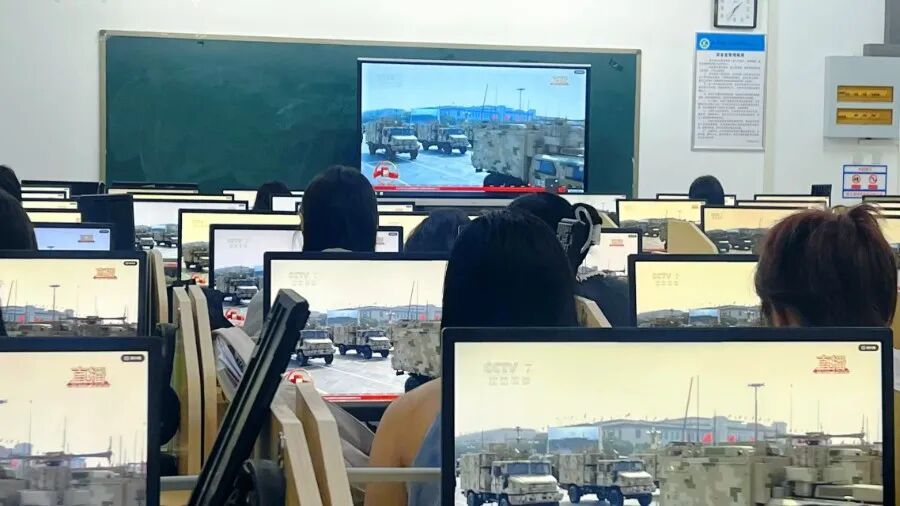 师生们全神贯注,深深地被官兵铿锵的步伐、昂扬的斗志、雄壮的新型武器装备阵列吸引,看到激动之处,许多教师和学生眼中闪烁着荣耀与自豪的泪光,现场不时自发响起热烈的掌声,浓厚的爱国激情在每个人心中激荡。