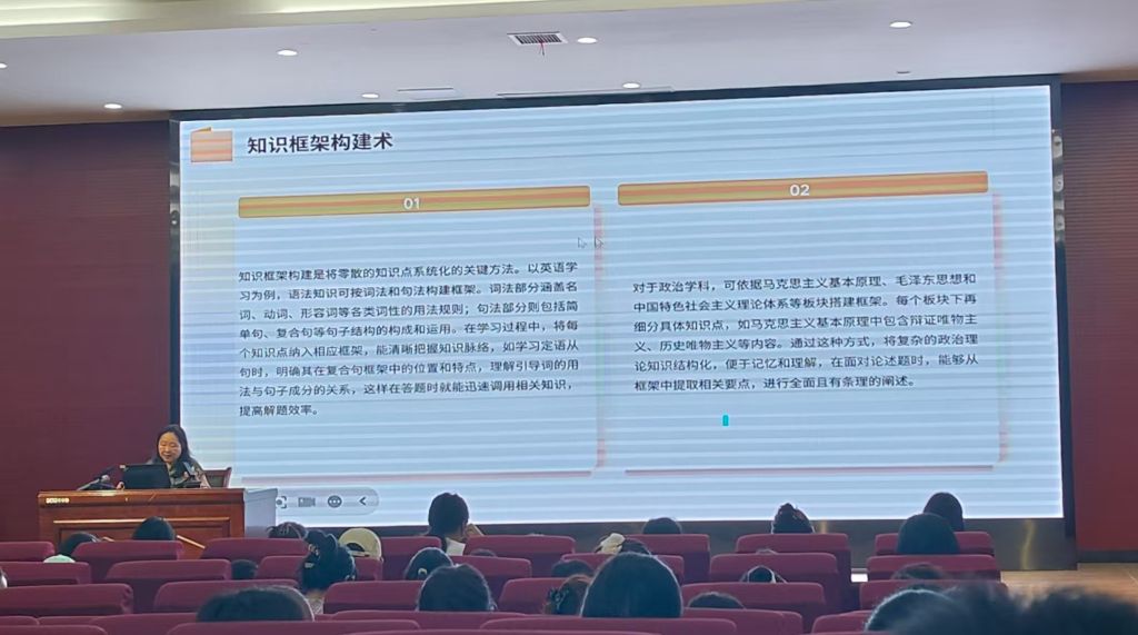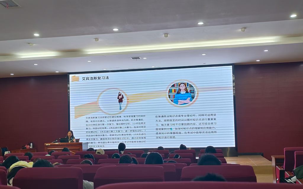 在讲解完各专业特点后,梁老师分享了通用备考方法与技巧。她重点介绍了知识框架构建术,以英语学习和政治学科为例,阐述了如何将零散知识点系统化,帮助学子更清晰地把握知识脉络,提高解题效率。同时,还讲解了艾宾浩斯复习法,通过科学安排复习时间间隔,有效对抗遗忘,巩固学习成果。