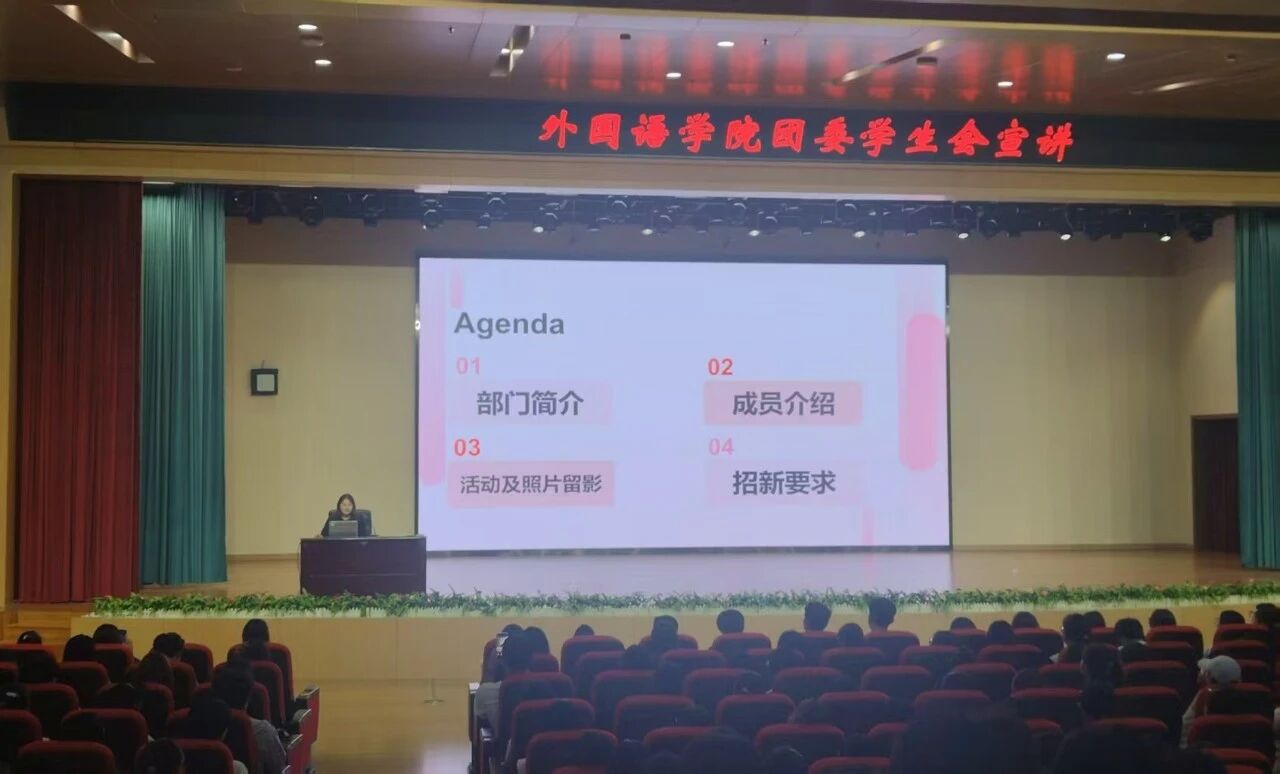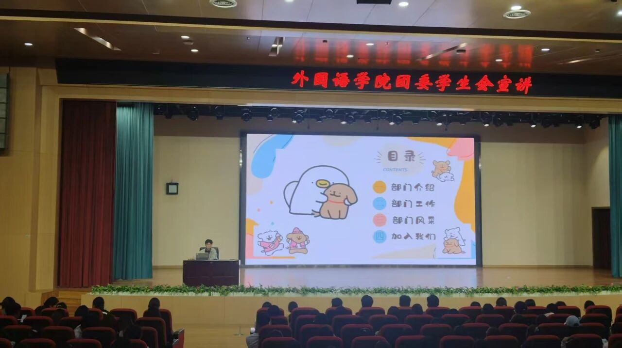 为更好地服务学生成长,搭建能力锻炼与风采展示的平台,9月8日晚,外国语学院团委学生会在文渊楼报告厅成功举办2025级新生招新宣讲会。会议由学生会主席任奥开主持,2025级新生积极参加。