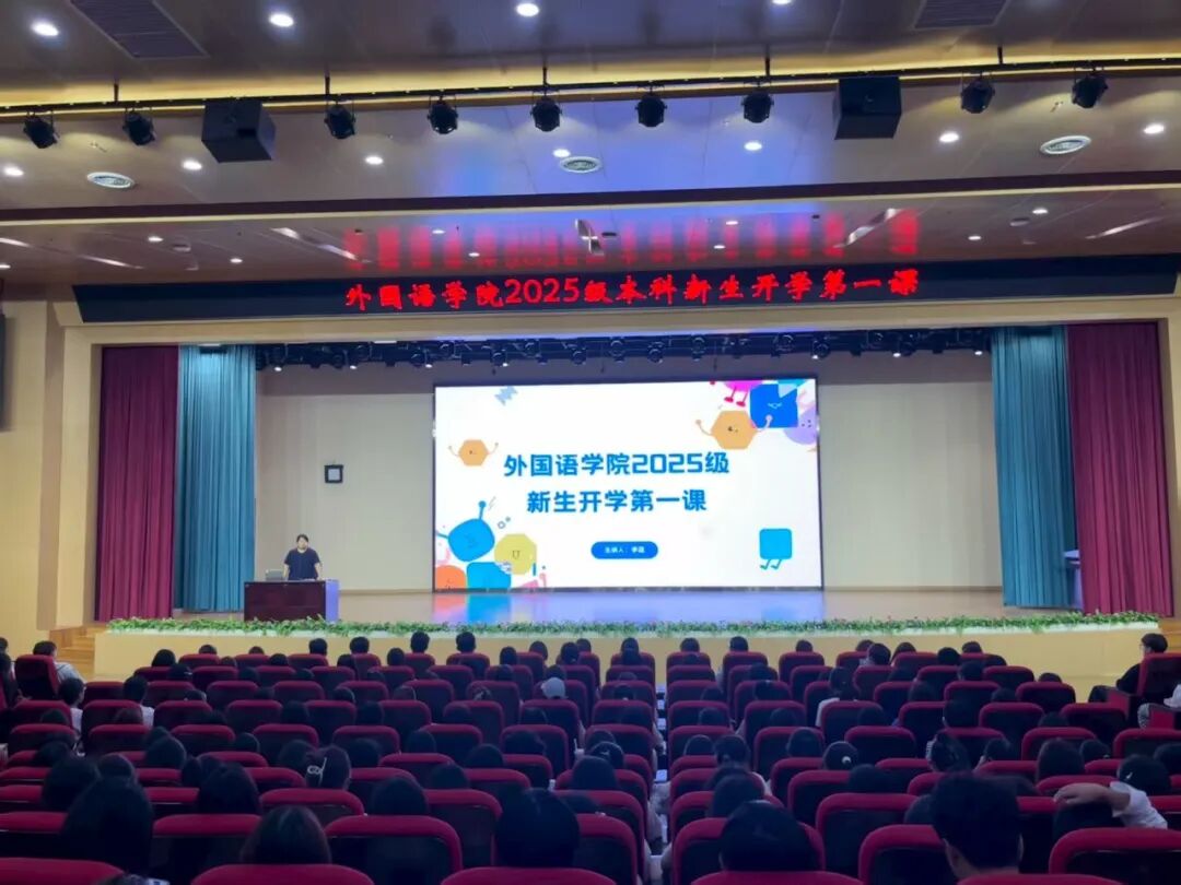 为帮助新生适应大学环境、明确发展方向,9月8日,外国语学院于文渊楼报告厅举办2025级本科新生开学第一课。本次会议由新生辅导员李荔、郝梦瑶共同主持,外国语学院2025级全体本科新生参与。