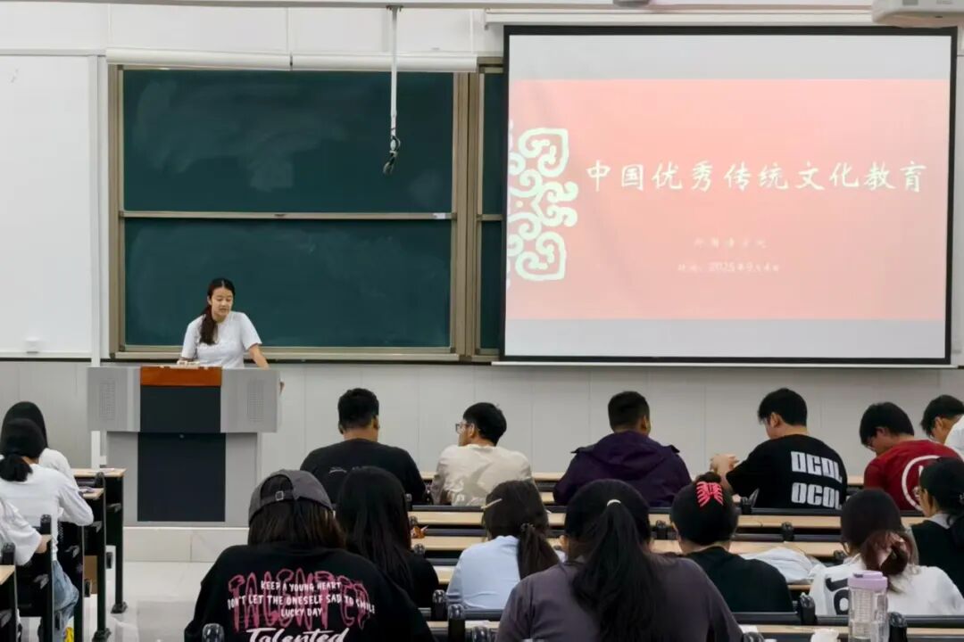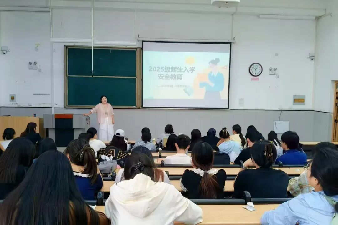 在系列讲座中,各位主讲教师分别就不同专题进行了深入讲解。李颖首先以“开学第一课”为题,详细讲解了上课与请假制度,并着重介绍了宿舍安全管理规范;随后,张帆开展了校史校情教育,详细介绍了学校发展历程和学院基本情况;崔亚莉开展了国防教育,系统介绍了学校大学生征兵入伍相关政策,鼓励同学们响应国家号召,投身国防事业;殷可、王伟共同主讲了理想信念教育讲座,向同学们介绍了入党程序与党的宗教政策,引导同学们树立正确的理想信念,坚定政治立场;范嘉欣以“中国优秀传统文化教育”为主题,系统讲解了包括文化艺术、民俗传统、物态文化等在内的传统文化内涵,并重点阐释了自强不息、厚德载物等传统文化精神,以及新时代民族精神的传承与发展,并特别强调了外语专业学生在跨文化交流中传承中华文化的重要使命;李颖就学科竞赛与考试安排作了全面介绍,包括期末考试流程、专业四级八级考试、翻译资格证书考试以及各类学科竞赛的具体要求;张智深开展了诚信与感恩主题教育,详细解读了各类奖助学金的申请条件、评选标准和发放流程;李荔以“新学期•心适应•新启程”为主题开展了心理健康教育;齐孝帆重点讲解了《学生手册》中的校规校纪,特别是课堂纪律和考试纪律的相关规定;温雪燕则分别开展了学生会组织介绍和安全知识讲座,内容涵盖国家安全、网络安全、交通安全与防诈骗知识等多个方面。王世宇、刘亚飞、任守敬等三位老师分别对英语、商务英语、翻译专业的新生们进行了细致的专业介绍与就业规划讲解,并回答了同学们关于本专业的疑虑困惑。每场讲座内容充实,讲解生动。同学们认真聆听,反响热烈,并表示收获颇丰,对新的校园生活有了更清晰的认识。