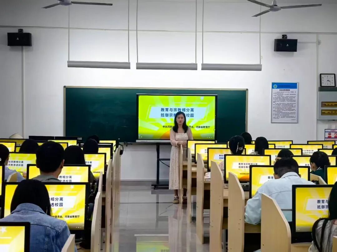 会上,张帆带领全体教职工学习了马克思主义宗教观、宗教相关法律、共产党员和共青团员相关规定、教师日常行为规范等。通过案例剖析的形式,带领教师们深入理解民族宗教工作在教育领域的重要性,明确了教师在落实民族宗教政策、维护校园和谐中的责任担当。参与培训的教师们积极互动,纷纷表示培训内容贴合教育实际,为今后在工作中贯彻相关政策提供了清晰指引。