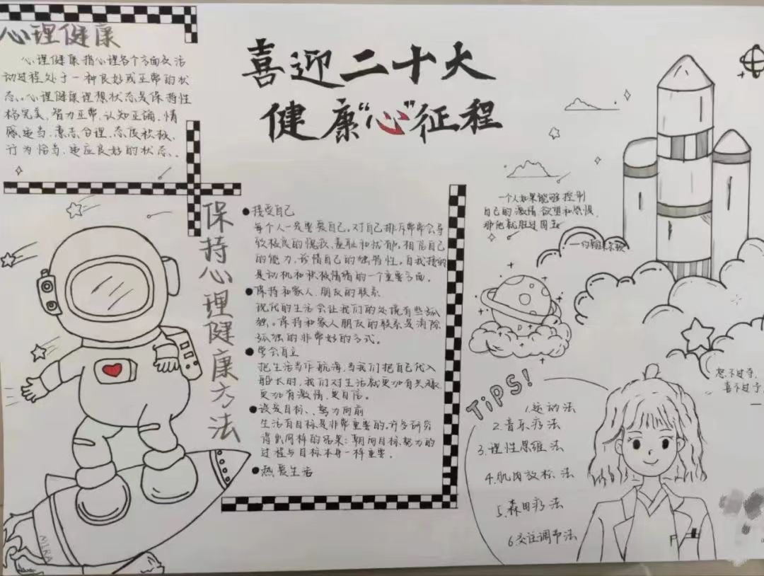活动开展期间,同学们积极踊跃报名参加。心灵漫画、心理手抄报创意评比活动激发了同学们的创造力和动手能力,通过绘画等方式体现对学生心理健康教育的看法和建议;以“喜迎二十大,健康‘心’征程”为主题的观影活动,使同学们树立远大志向,学会以乐观的心态去面对困难;“毛毛虫竞速”比赛、跳大绳等活动缓解同学们在生活、学习上的压力,使同学们的身心得到有效放松。