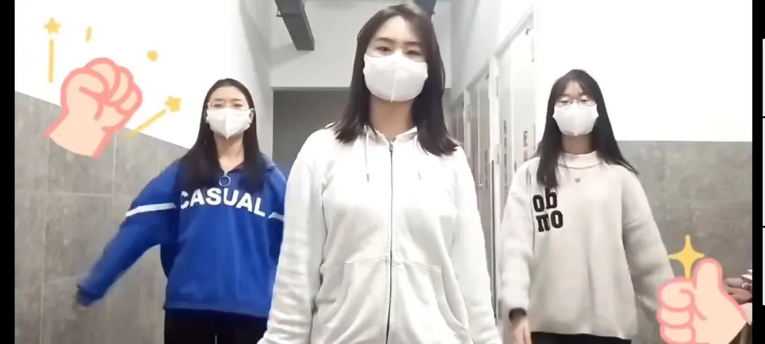口罩盖不住微笑,疫情遮不了激情。在此次活动中,同学们佩戴口罩举起相机、手机在学校各处记录下在疫情面前绝不退让、勇往直前的靓丽风采与铿锵誓词,生动呈现出作为新时代青年敢于担当、勇于奋斗的青春精神。“露出微笑,戴上口罩,疫情退让!中国力量,华夏强壮,逆流而上!”脍炙人口的音乐搭配同学们随歌起舞的手指,深刻展现着同学们的抗疫信心。